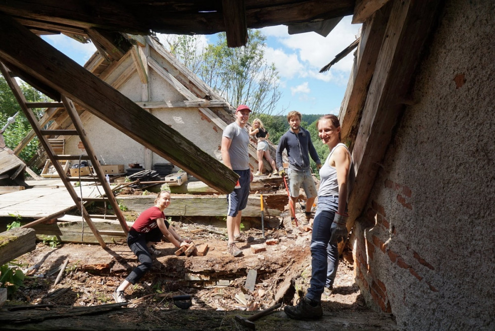 Skupina mladých nadšenců z Česka a Německa opravuje zdevastovaný kostel sv. Anny, foto: Prokop Šícha