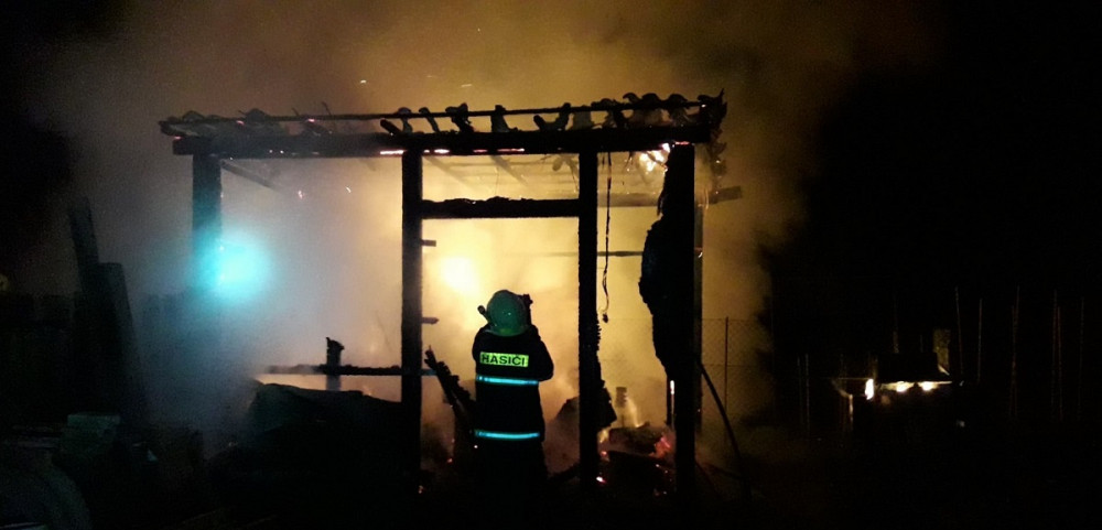 Požár dřevníku nepřežily desítky křepelek, hasiči zasahovali i v bezdomovecké osadě