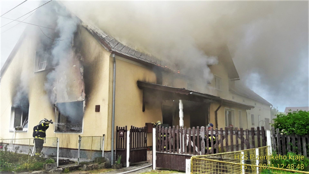 Deset jednotek hasičů bojovalo s rozsáhlým požárem rodinného domu