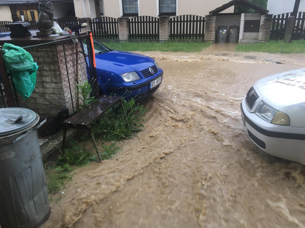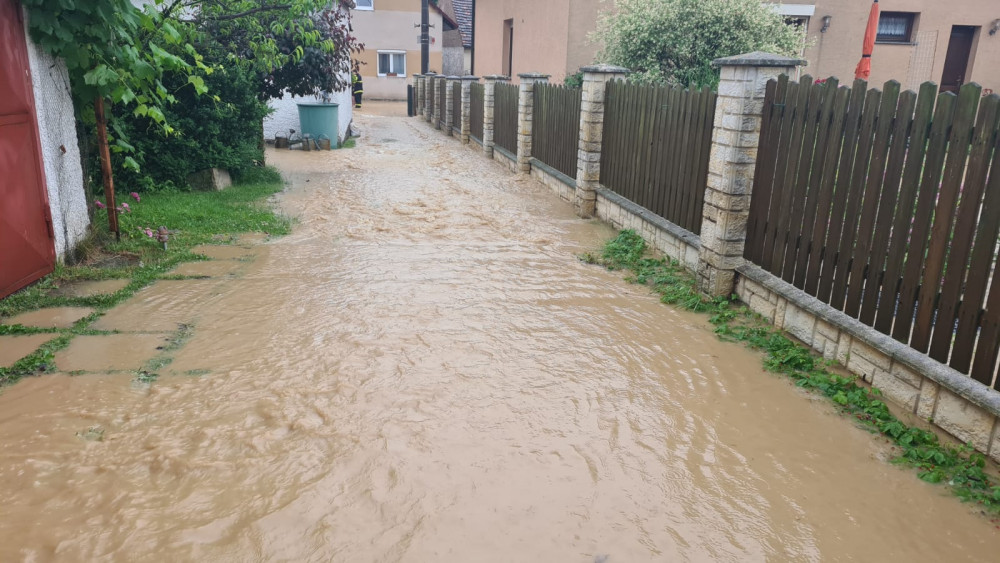 Hráz polderu nevydržela obrovský nápor z přívalového lijáku, protrhla se a zaplavila obec na Rokycansku