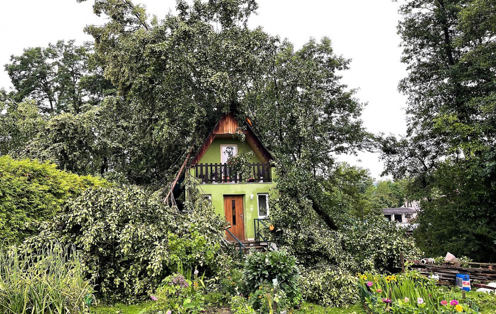 Krajem se prohnala silná bouře. Strom spadl na rodinný dům,  místy nejezdí ani vlaky