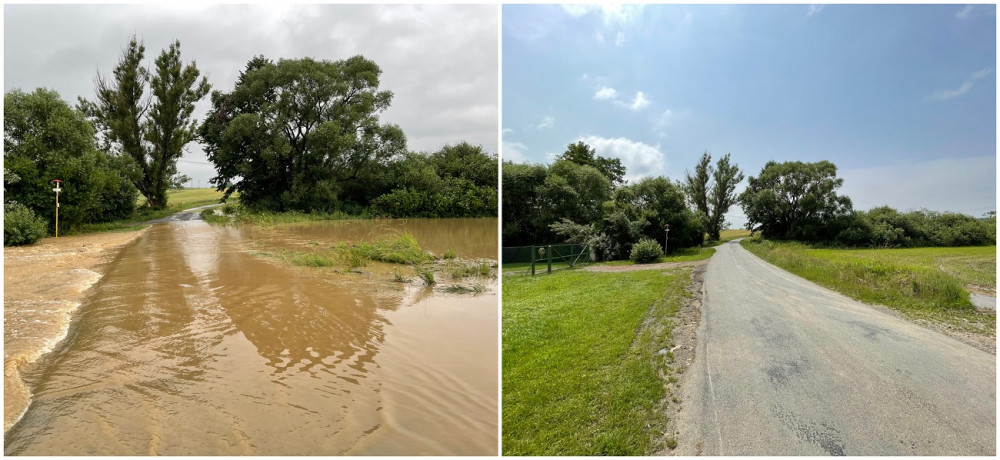 Zatopená silnicie mezi Sečí a Zdemyslicemi