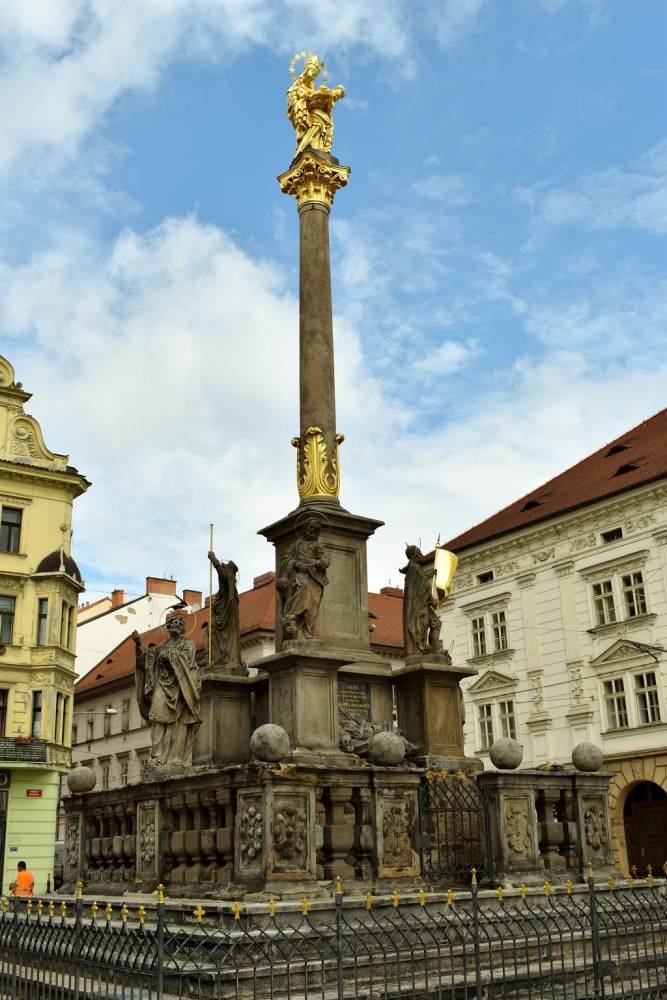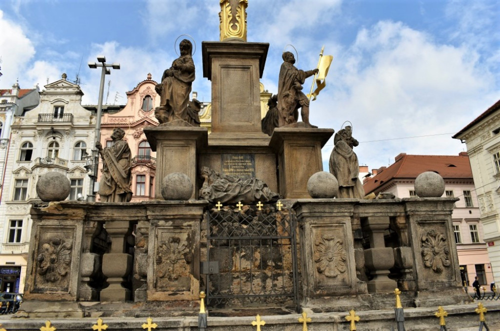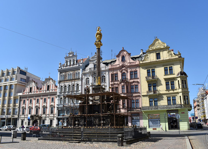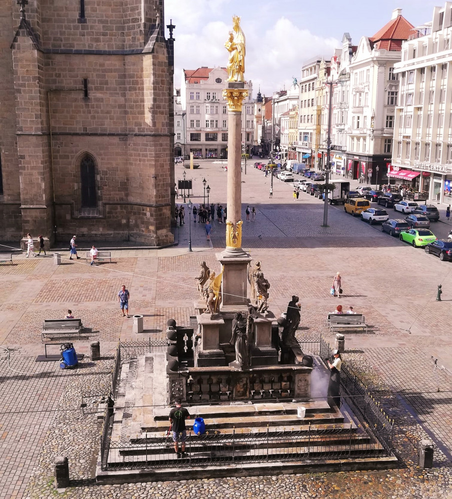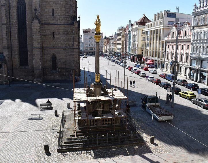 Oprava morového sloupu na plzeňském náměstí Republiky bude hotová ještě letos