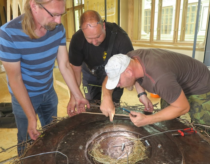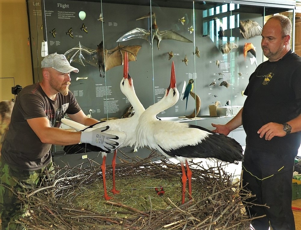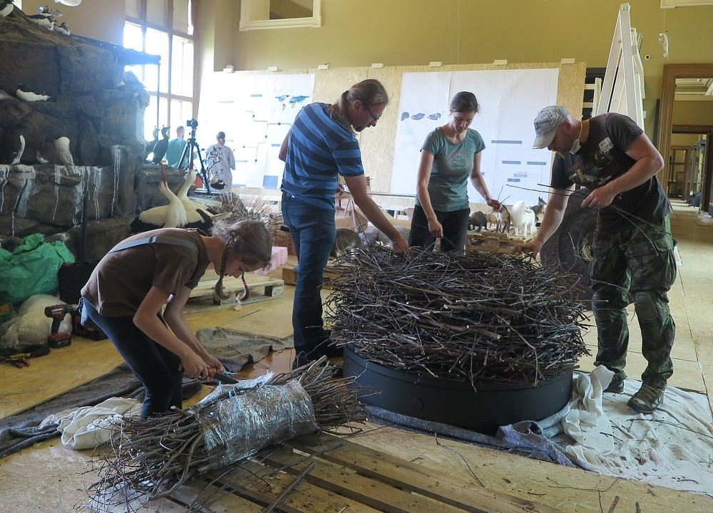 Experti z plzeňské záchranné stanice vyráběli čapí hnízdo pro novou expozici Národního muzea Praha