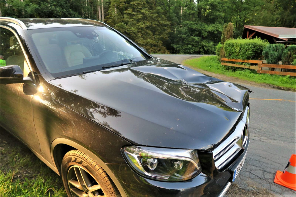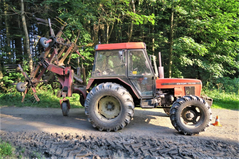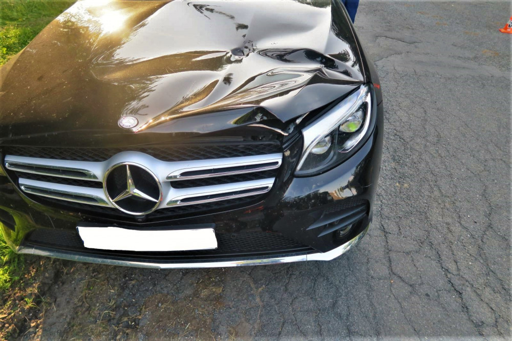 Luxusní mercedes se na křižovatce potkal s obracečem sena a je z toho škoda za 150 tisíc