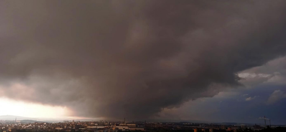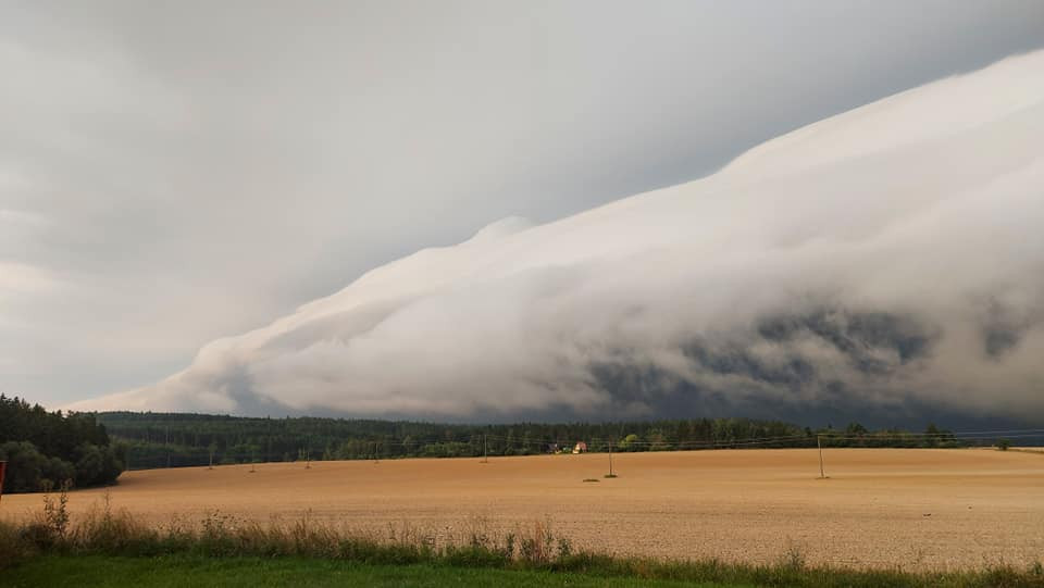 Obří mrak roll cloud se vytvořil ráno nad Plzeňskem, lidem se naskytla úchvatná podívaná
