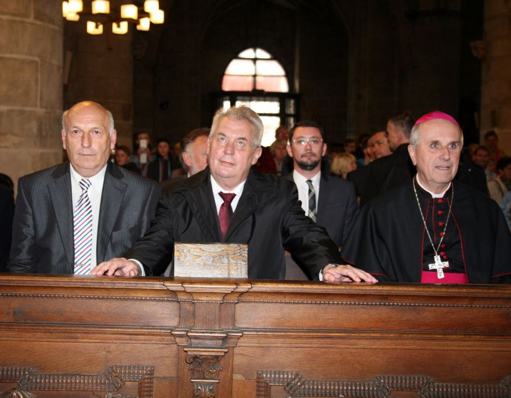 Prezident Miloš Zeman si během své květnové návštěvy Plzně v roce 2014 prohlédl katedrálu sv. Bartoloměje.
