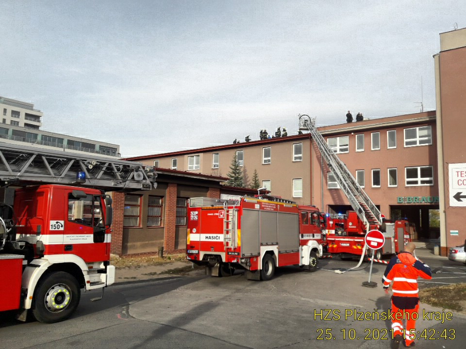 Hořelo na střeše objektu plzeňské fakultní nemocnice na Borech, kde sídlí oddělení dialýzy