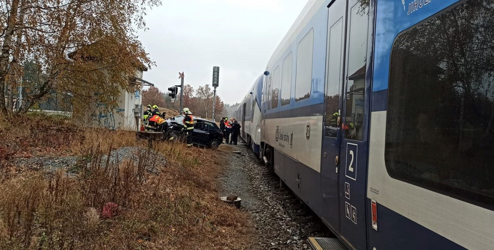 Vlak smetl na železničním přejezdu vůz značky Audi, jeho řidič nerespektoval červené světlo