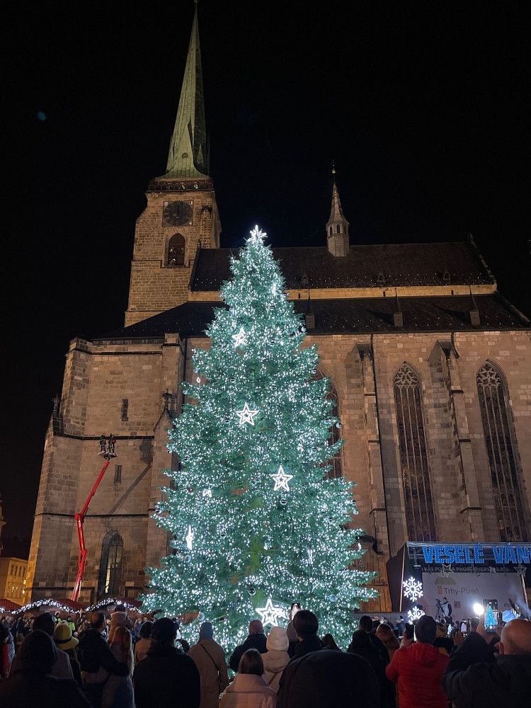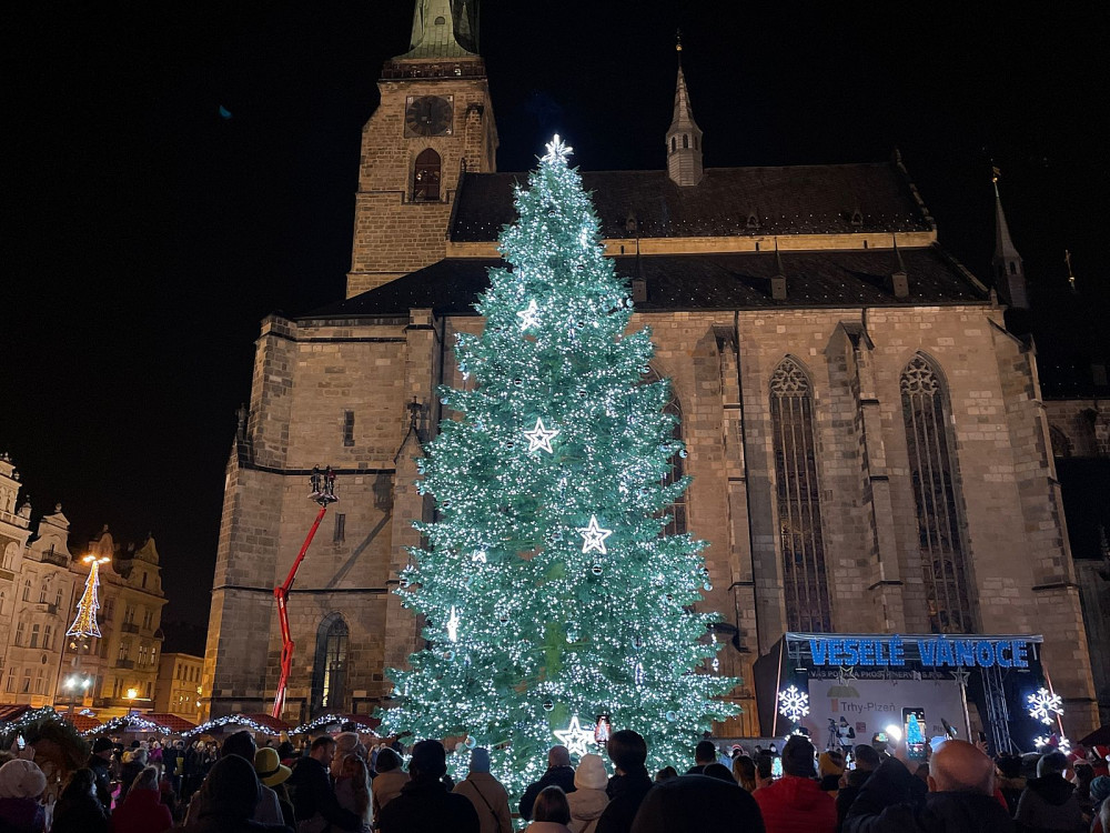 Stovky lidí si nenechaly ujít rozsvícení vánočního stromu v Plzni, i když akce byla oficiálně zrušena