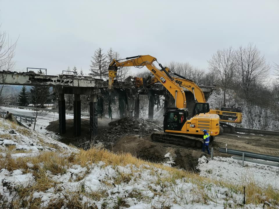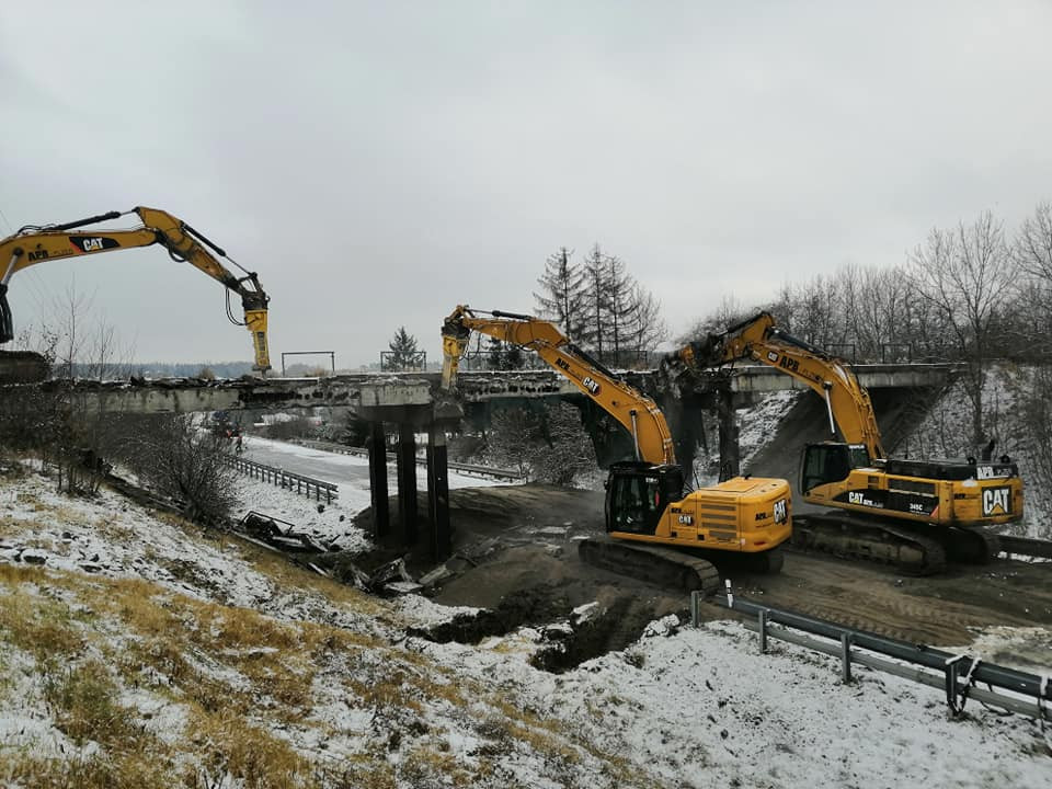 Těžká technika začala s demolicí nebezpečného mostu nad silnicí z Plzně do Karlových Varů