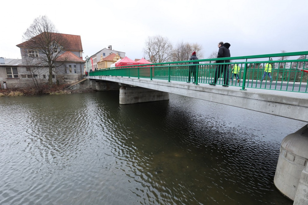 Na nově opraveném mostě v Horšovském Týně se bezpečně vyhnou i dva náklaďáky