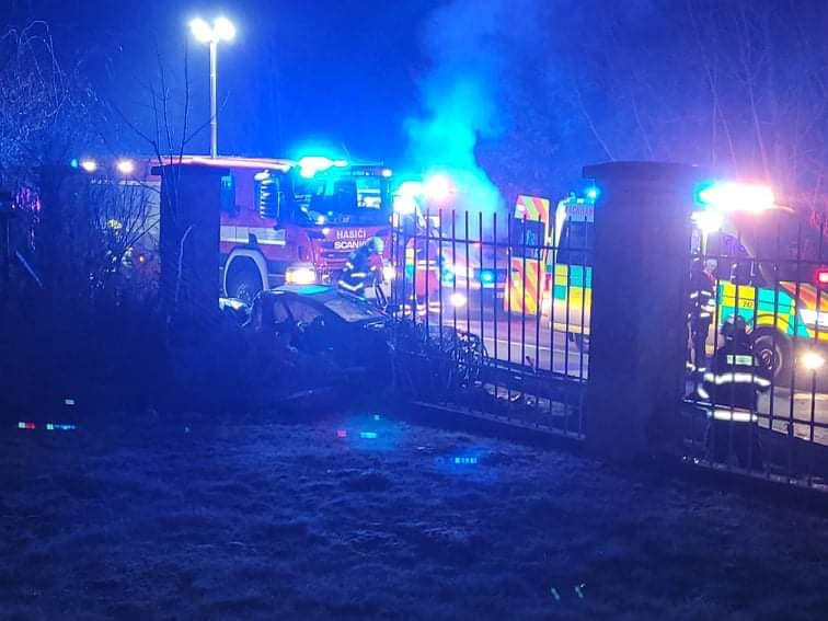 Opilí a zfetovaní mladíci sešrotovali auto u vjezdu do věznice, dva z nich utekli od zraněných kamarádů
