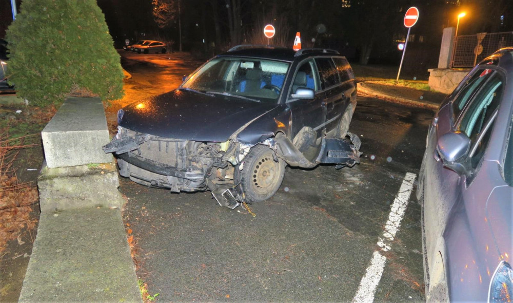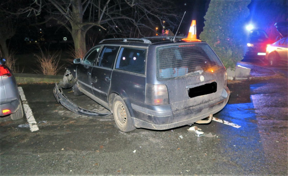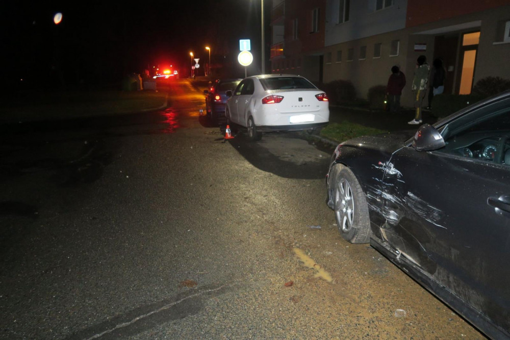 Namol opilá motoristka demolovala auta, kontejner i okap, spanilou jízdu zakončila nárazem do zdi