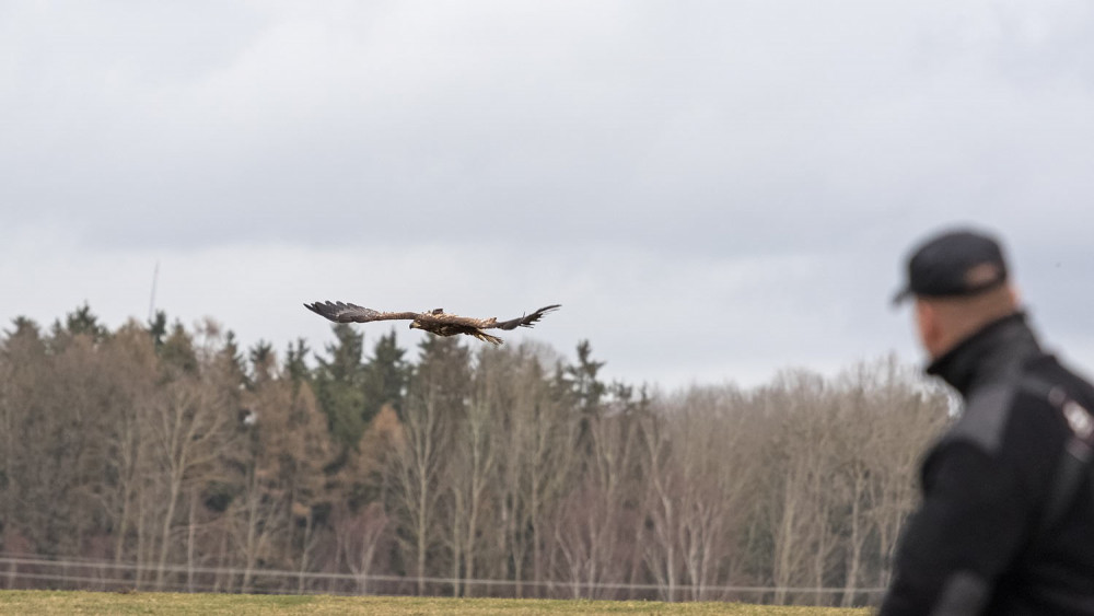 Karel Makoň vypouští orla Pařátka uzdraveného po náročné operaci zpět do volné přírody