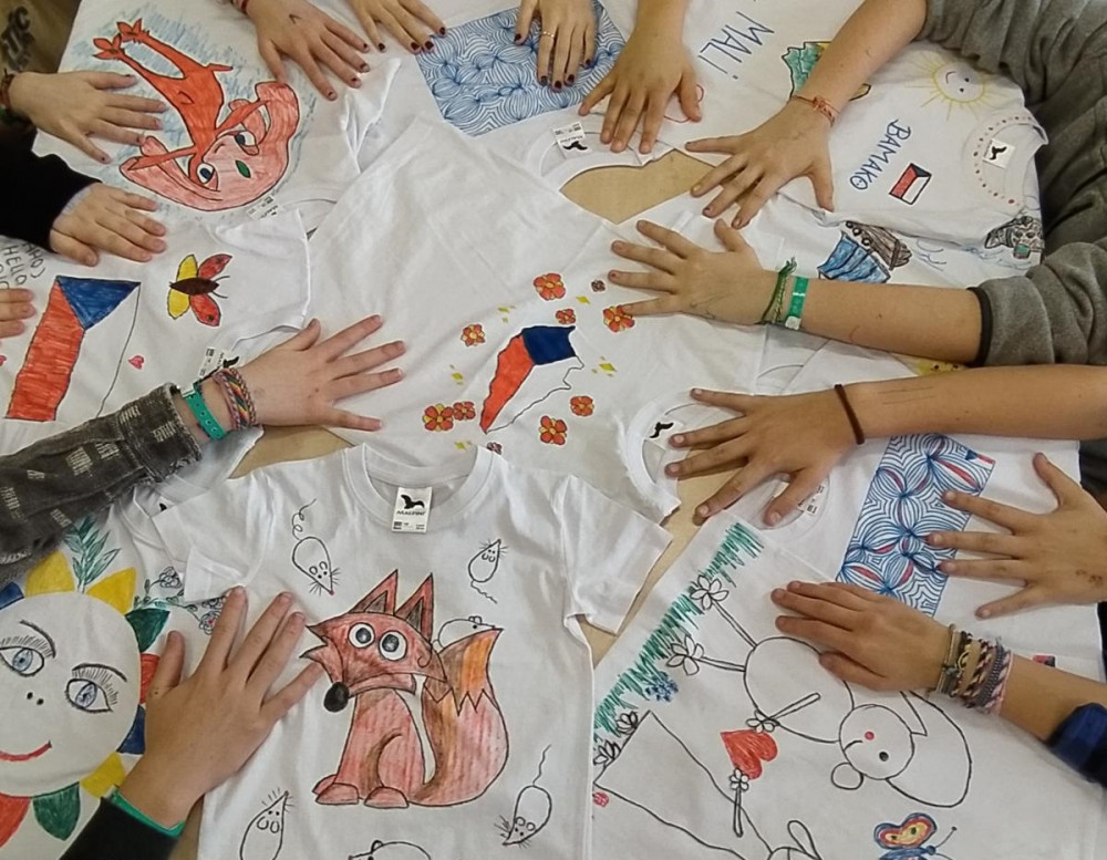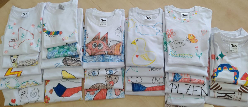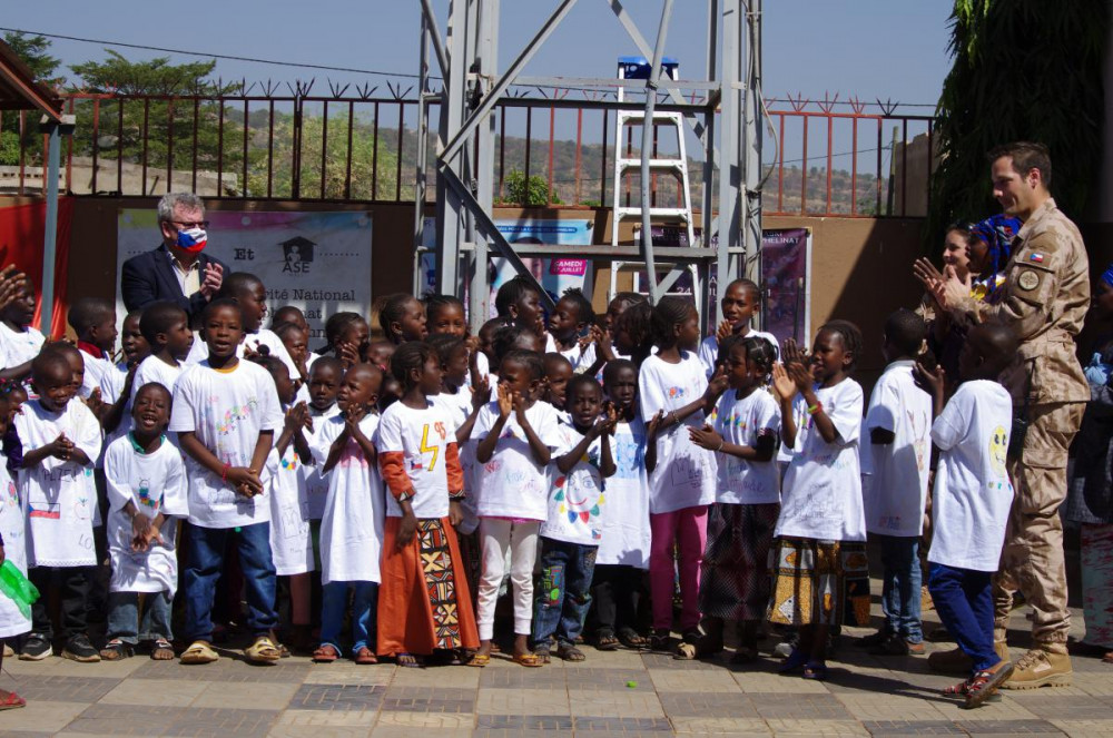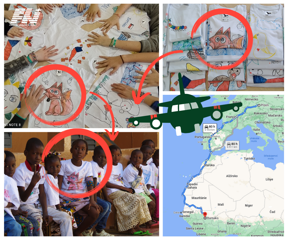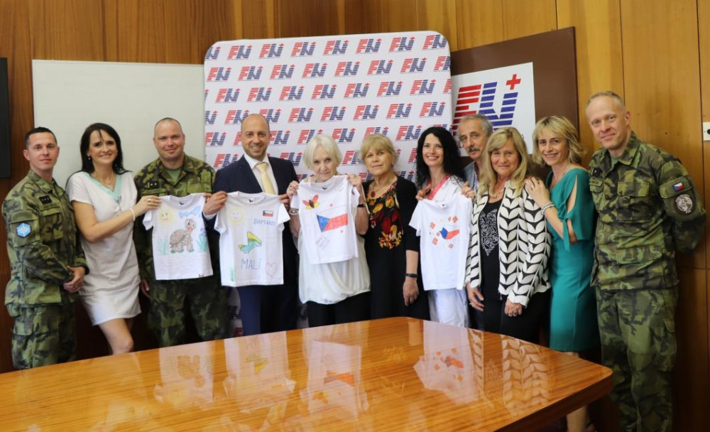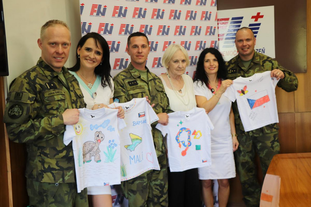 Nejmenší pacienti FN Plzeň namalovali trička pro sirotky v africkém Mali, dárky předali dětem vojáci