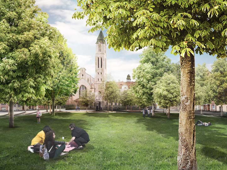 Jiráskovo náměstí - pohled na klášter (zdroj vizualizace: re:architekti)