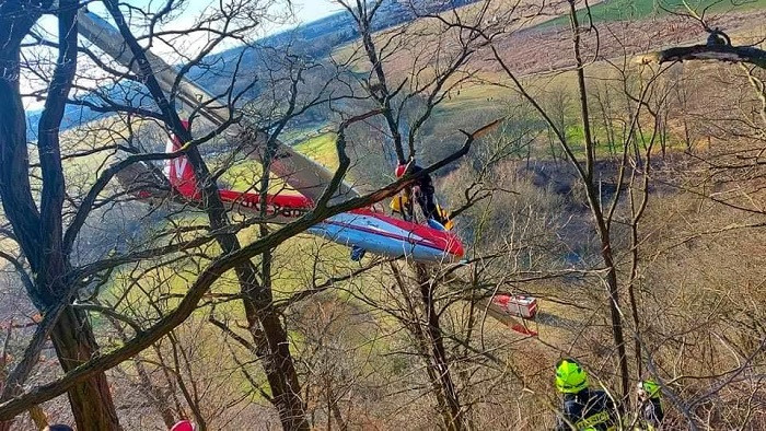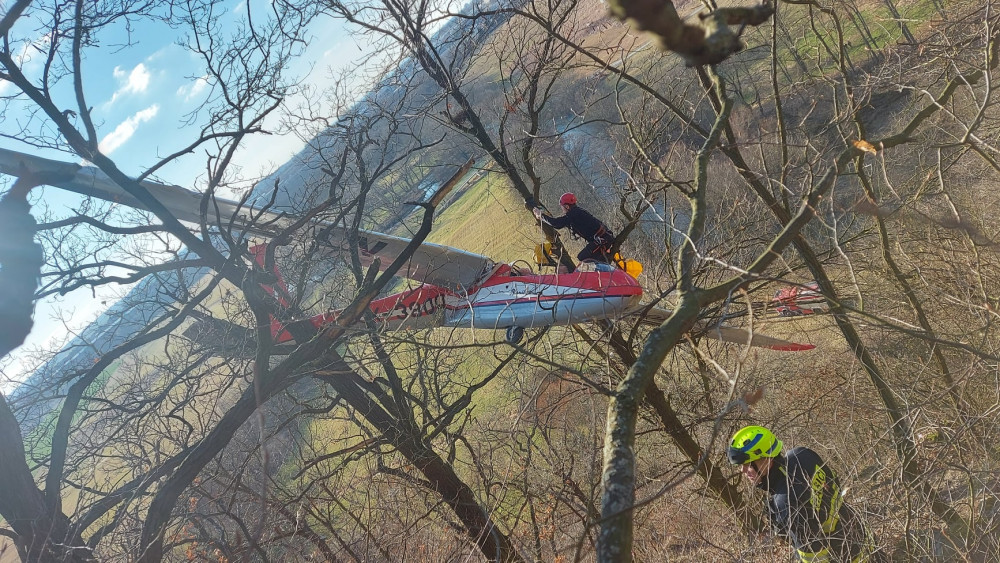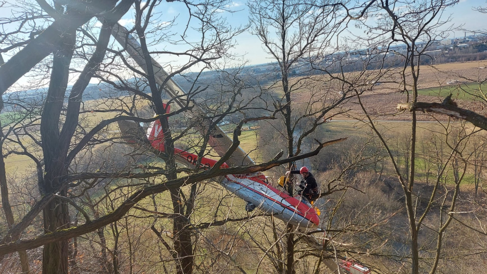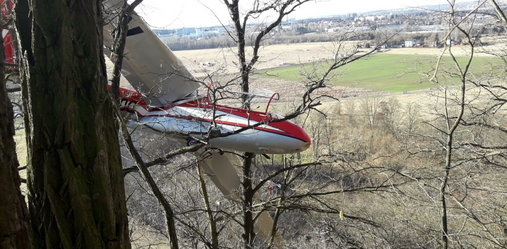 VIDEO: Pilot větroně nezvládl přistání a skončil na vyhlídce v korunách stromů