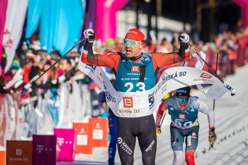 Rekordní a slunečnou 55. ČEZ Jizerskou 50 vyhráli Nor Nygaard a Švédka Dahlová