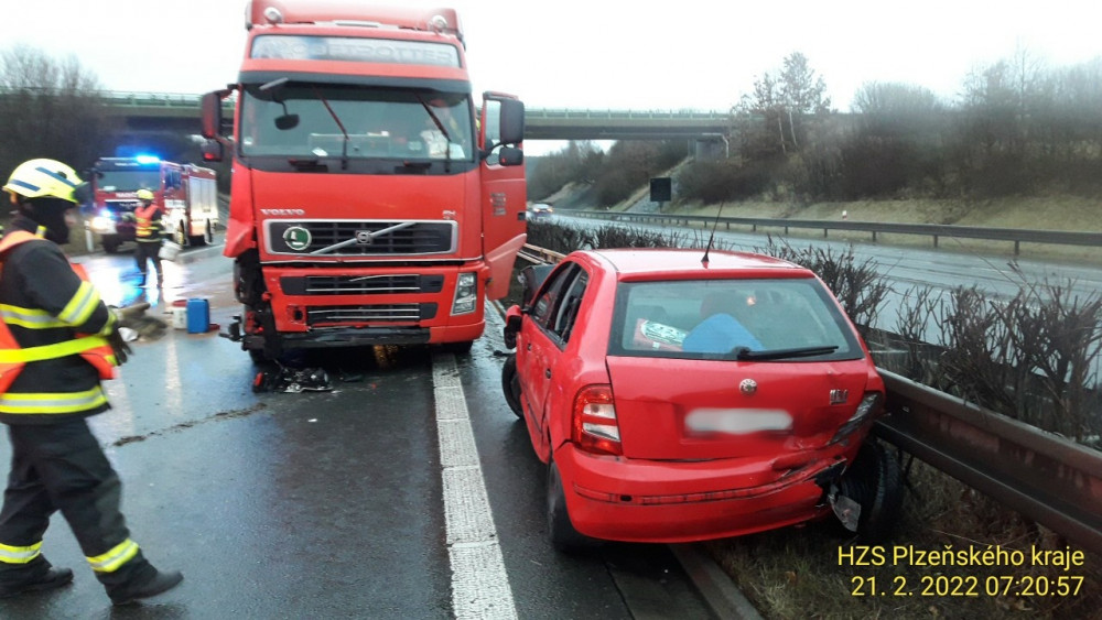 Nehoda tří aut ochromila provoz na dálnici D5 ve směru na Rozvadov