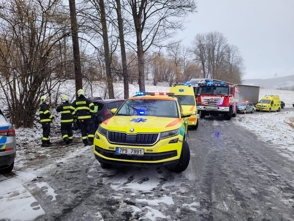 Plně obsazený automobil čelně narazil u hřbitova do stromu, nehodu nepřežila jedna žena