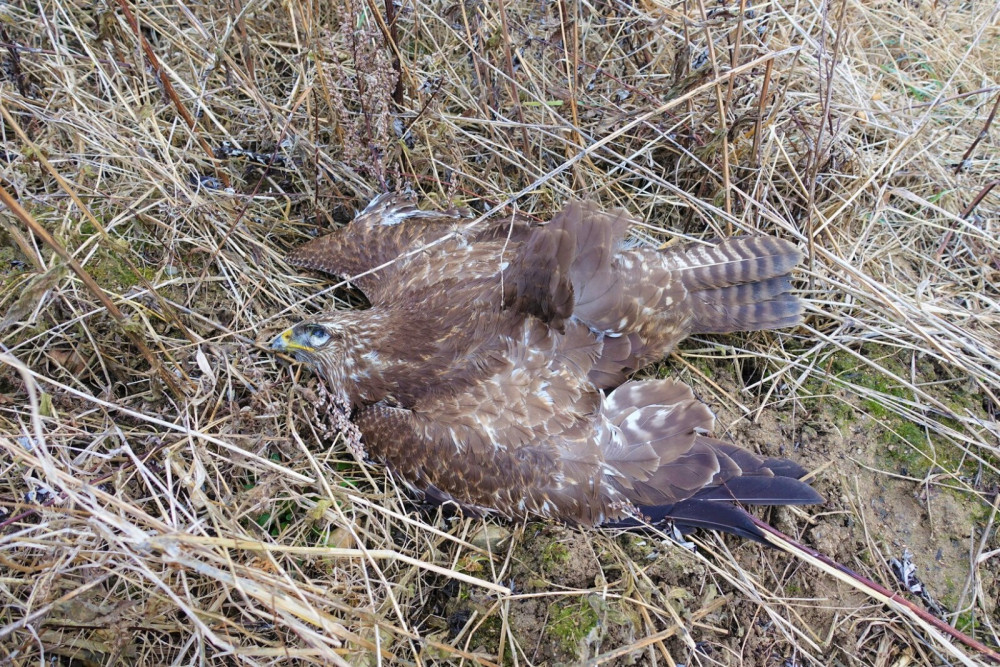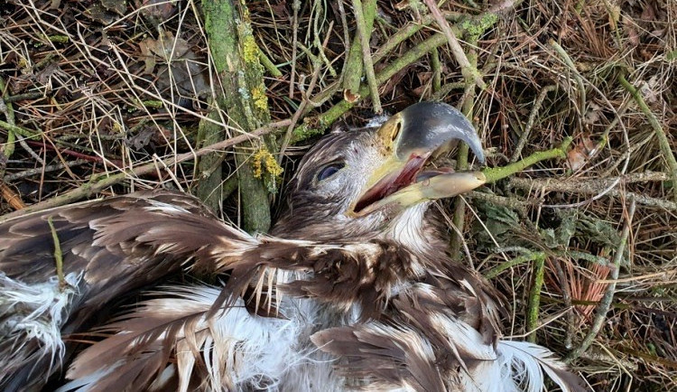Jeden z otrávených dravců na místě činu