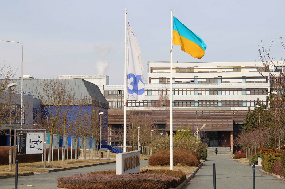 Jako výraz podpory Ukrajině vyvěsila Západočeská univerzita v kampusu na Borských polích ukrajinskou vlajku.