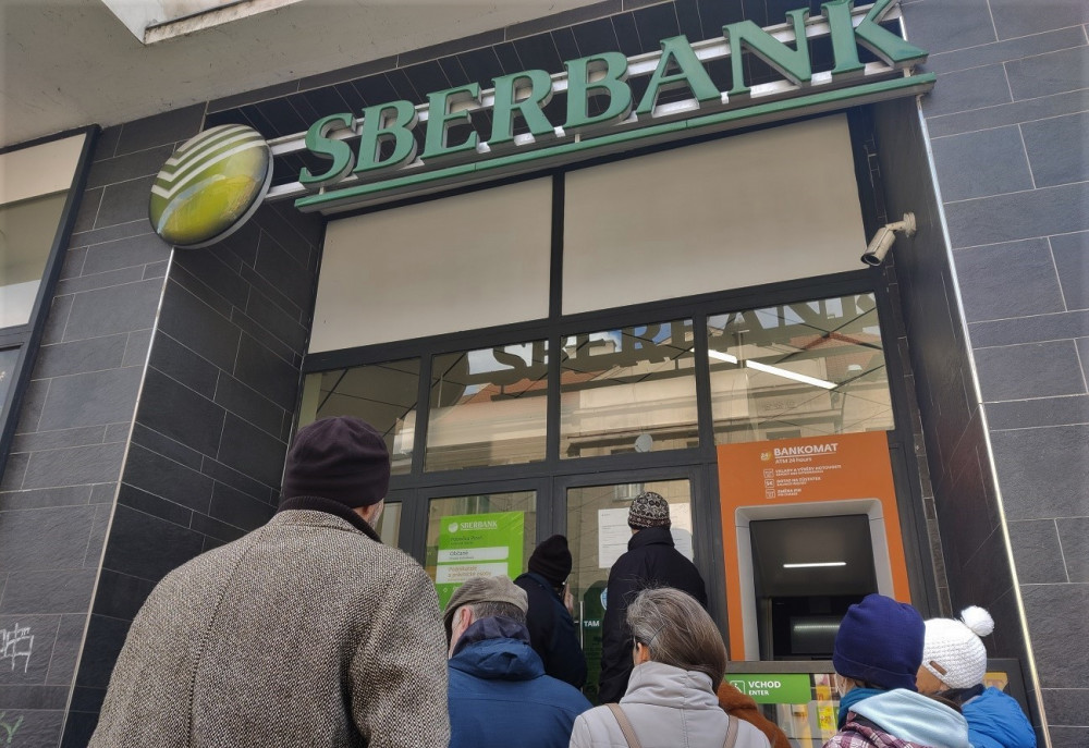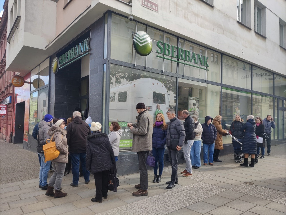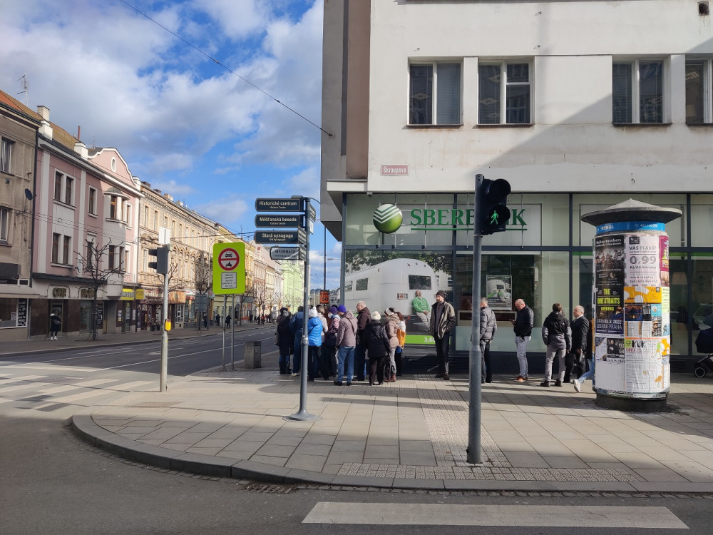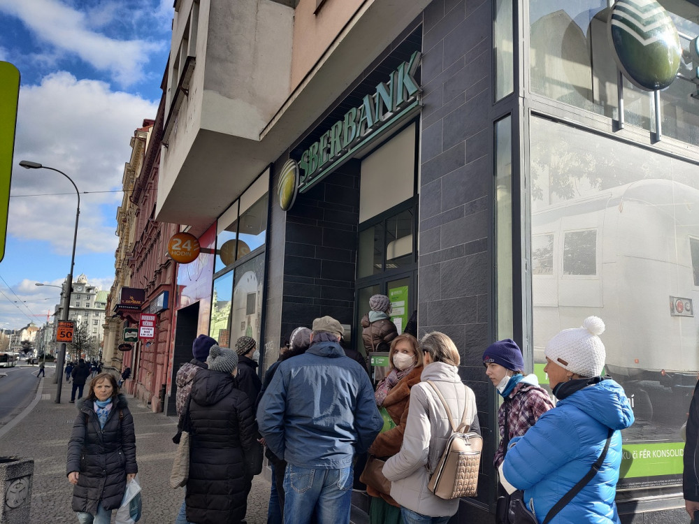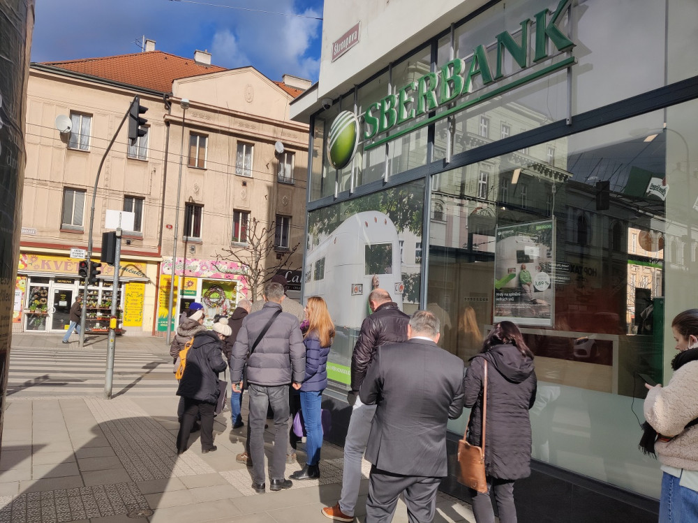 Před plzeňskou pobočkou ruské Sberbank se dnes tvořily fronty, lidé se domáhali svých úspor