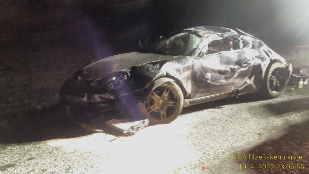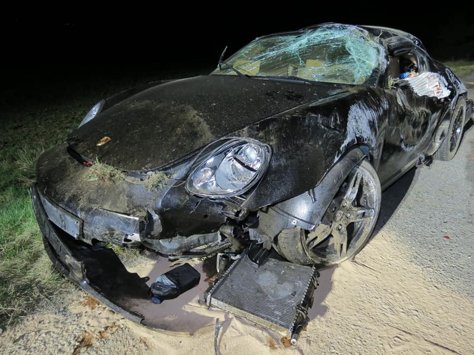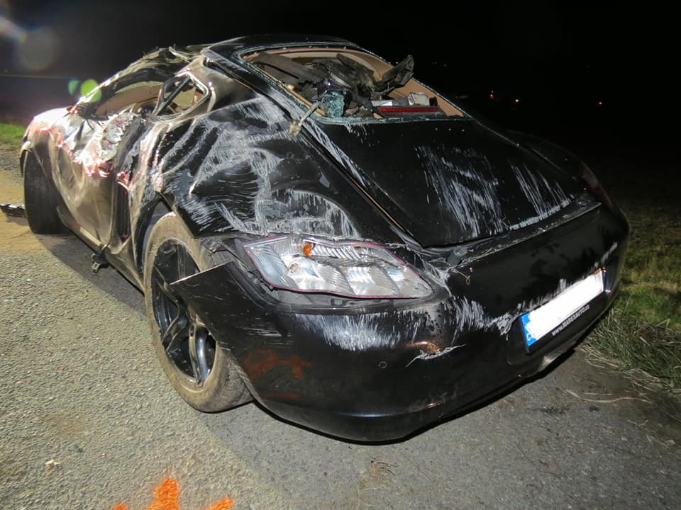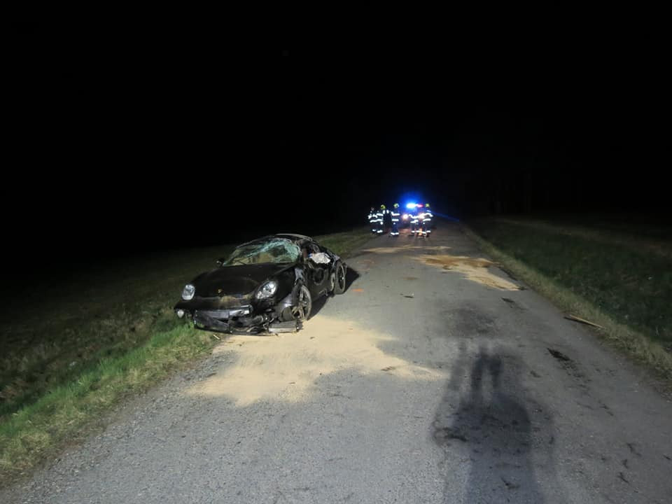 Řidič vozu značky Porsche vyletěl ve vysoké rychlosti ze silnice, těžce zranil sebe i svého spolujezdce