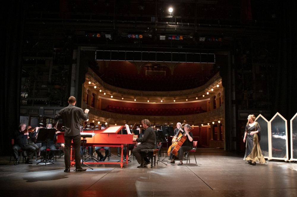 Apolena Veldová, zády Jiří Petrdlík, členové Orchestru opery DJKT, foto: Irena Štěrbová