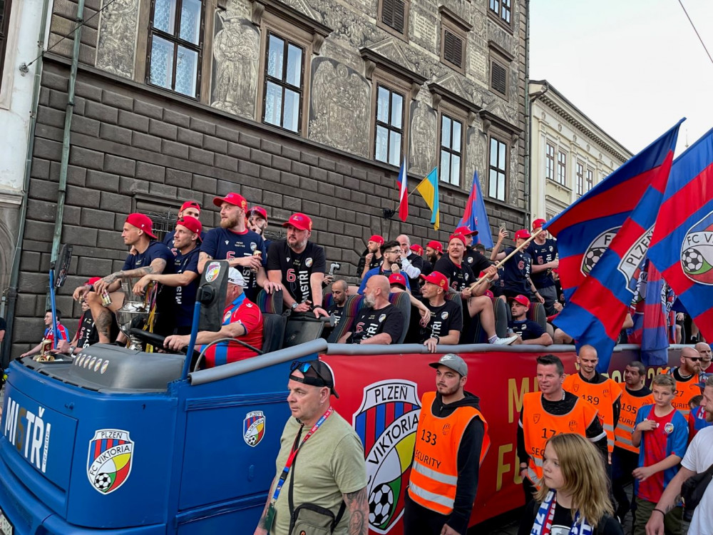 Plzeň je v extázi, fanoušci bouřlivě oslavují s hráči FC Viktoria Plzeň mistrovský titul