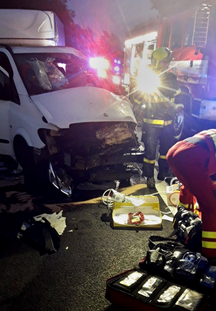 Řidič utrpěl velmi těžké zranění při hrozivé nehodě tří dodávek a kamionu s cisternou