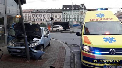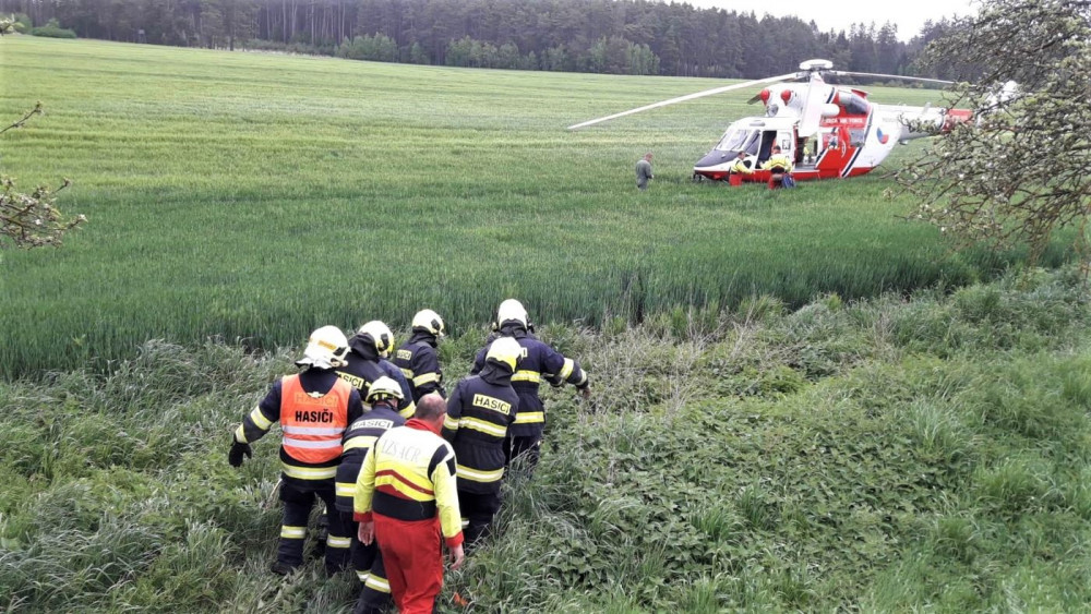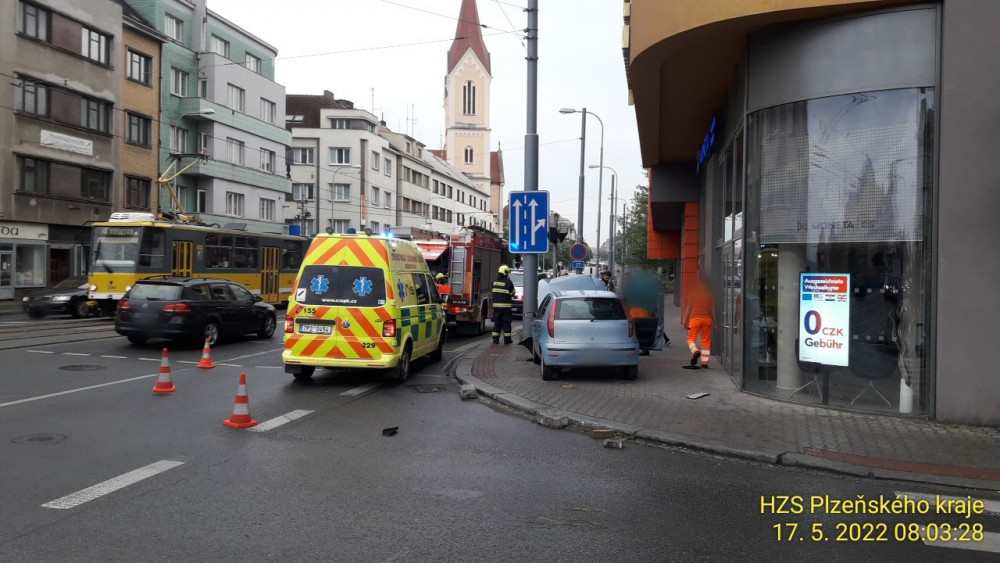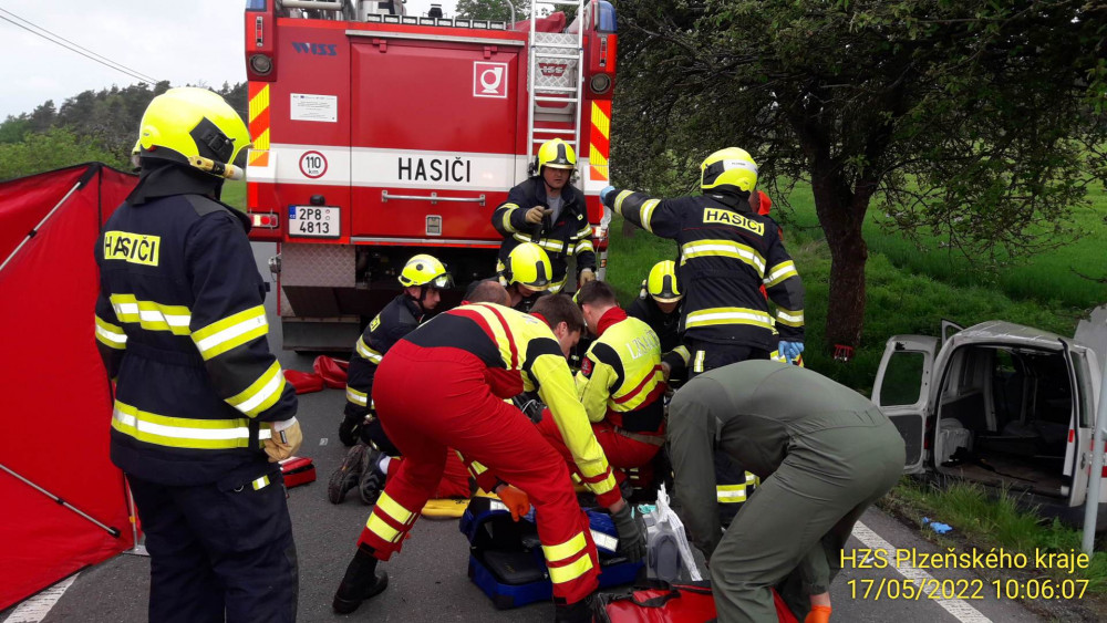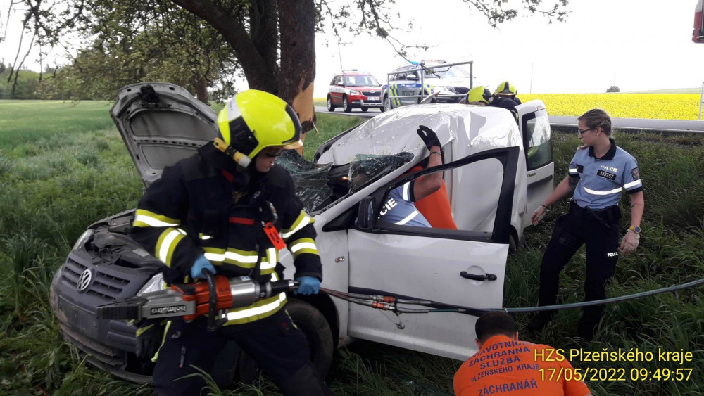 Po nárazu auta do stromu na Tachovsku bojuje spolujezdec muž o život, transportoval ho vrtulník do nemocnice