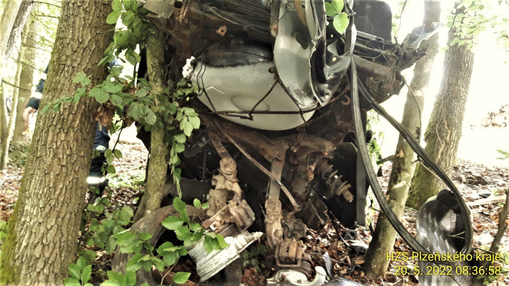 Osmnáctiletý řidič vyletěl s autem do lesa a doslova ho pověsil na stromy