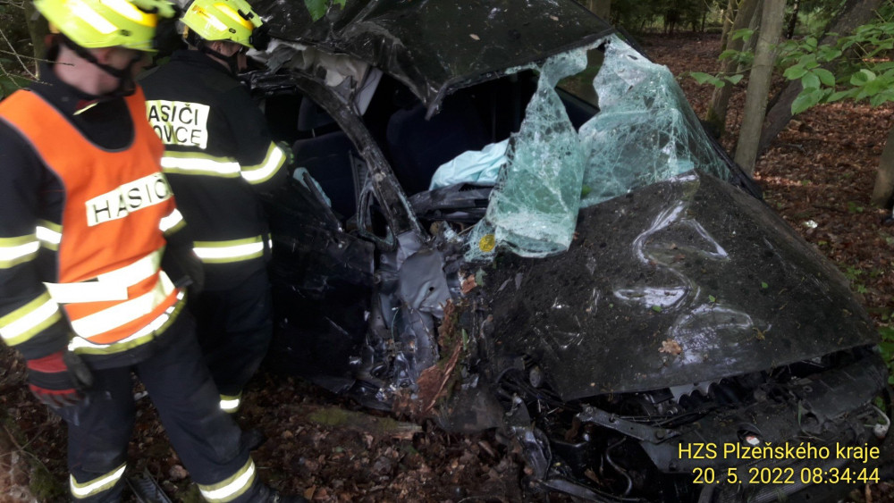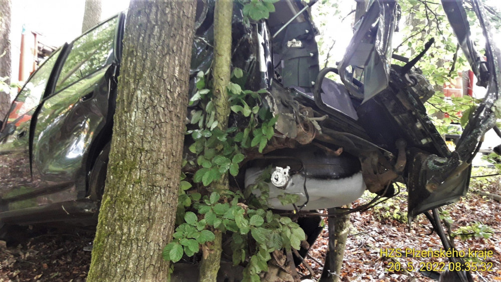 Osmnáctiletý řidič vyletěl s autem do lesa a doslova ho pověsil na stromy