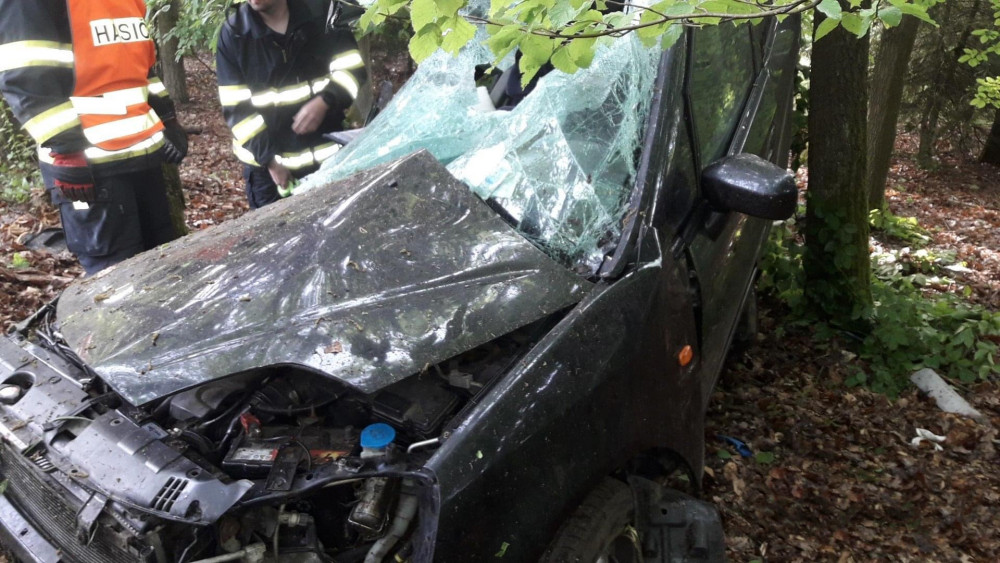 Osmnáctiletý řidič vyletěl se svým autem ze silnice do lesa a doslova ho pověsil na stromy