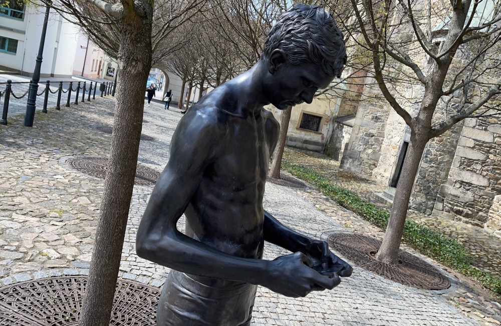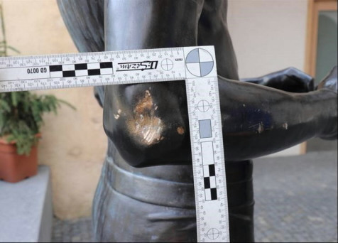 Vandal už podruhé během května zaútočil na populární sochu mladíka ve slipech, ulomil mu obě ruce