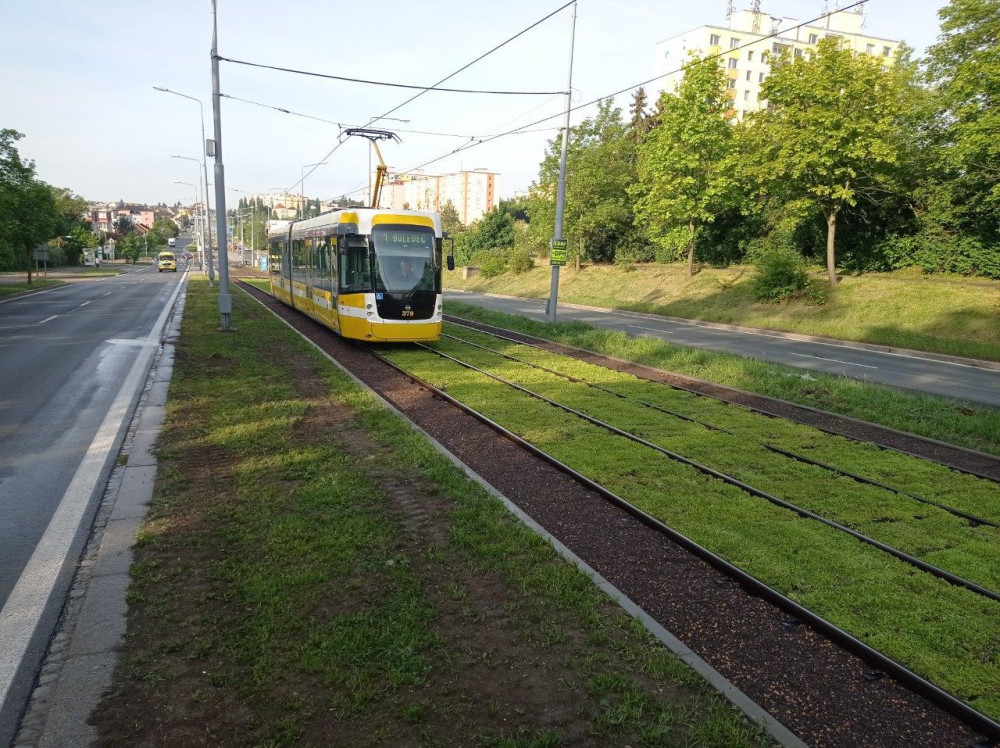 Zrekonstruovaná tramvajová trať zezelenala, osázené rozchodníky snižují prašnost a hluk