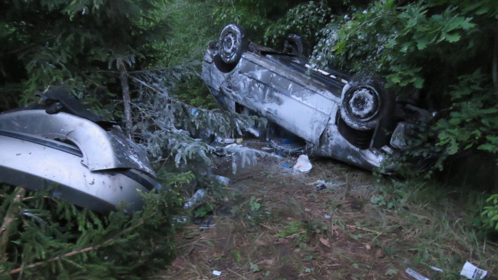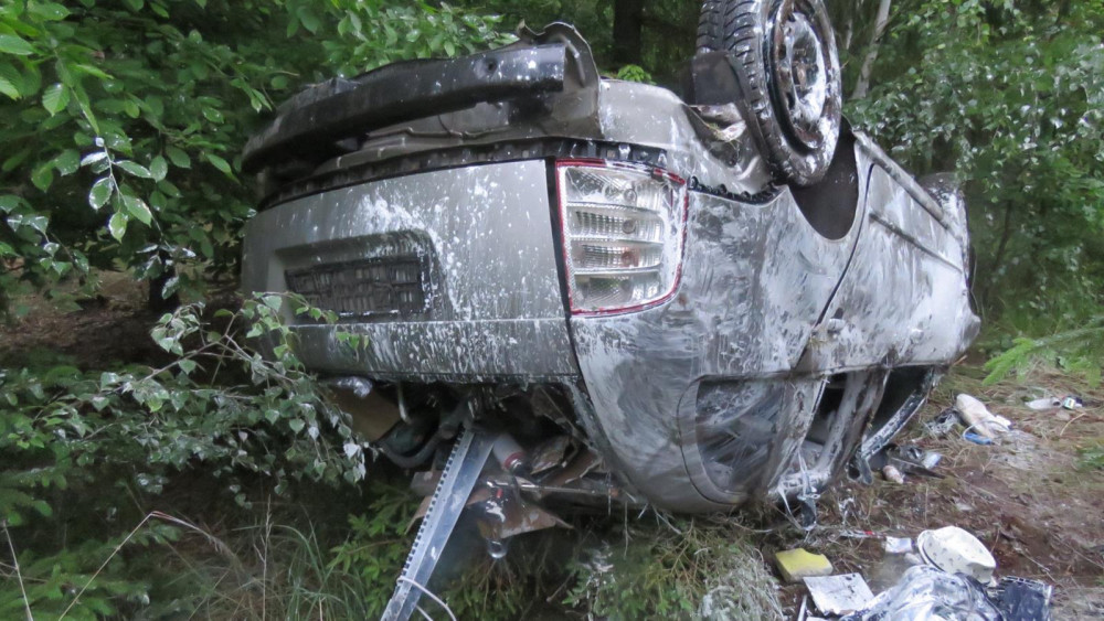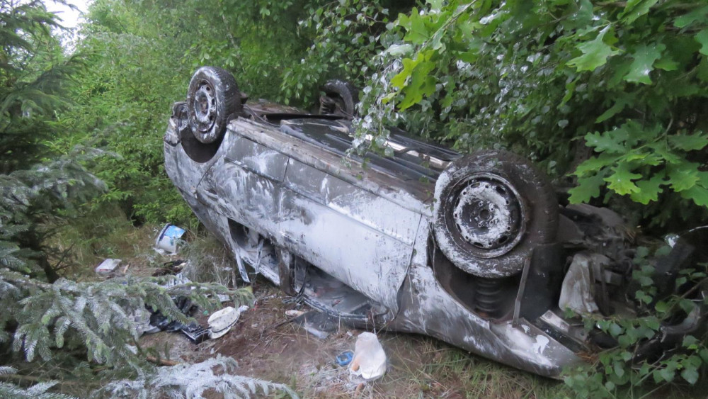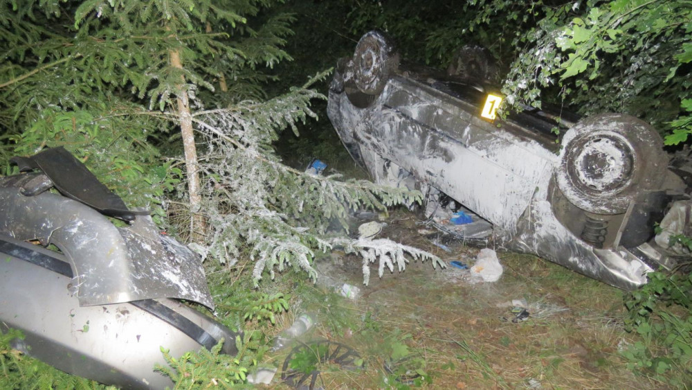 Automobil plný barev vylétl ze silnice, řidič skončil v nemocnici a jeho spolucestující v rukou cizinecké policie