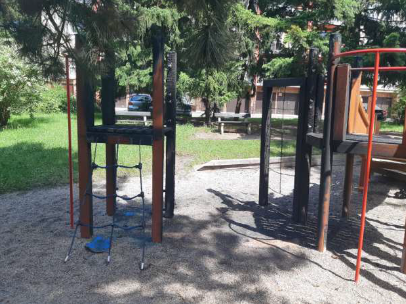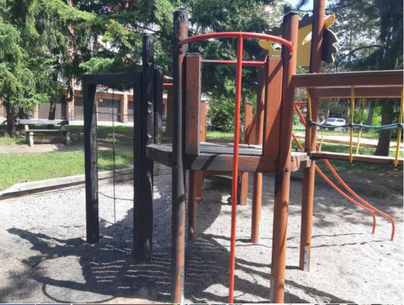 Vandal zapálil prolézačku na dětském hřišti, způsobil tím škodu za 300 tisíc korun