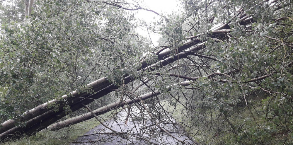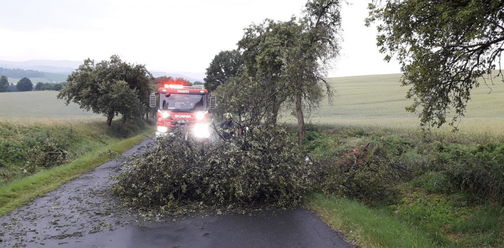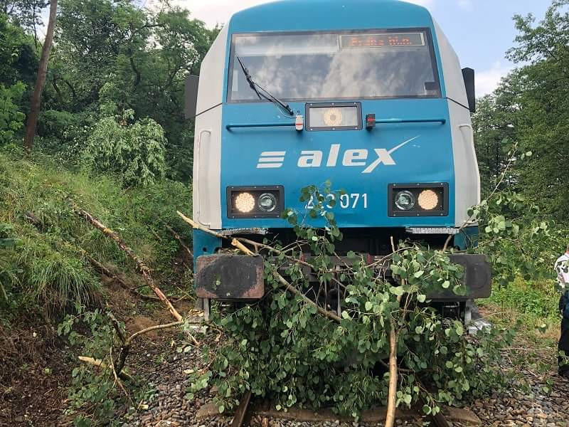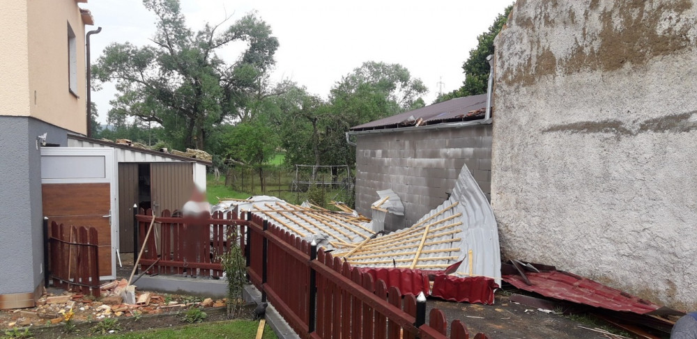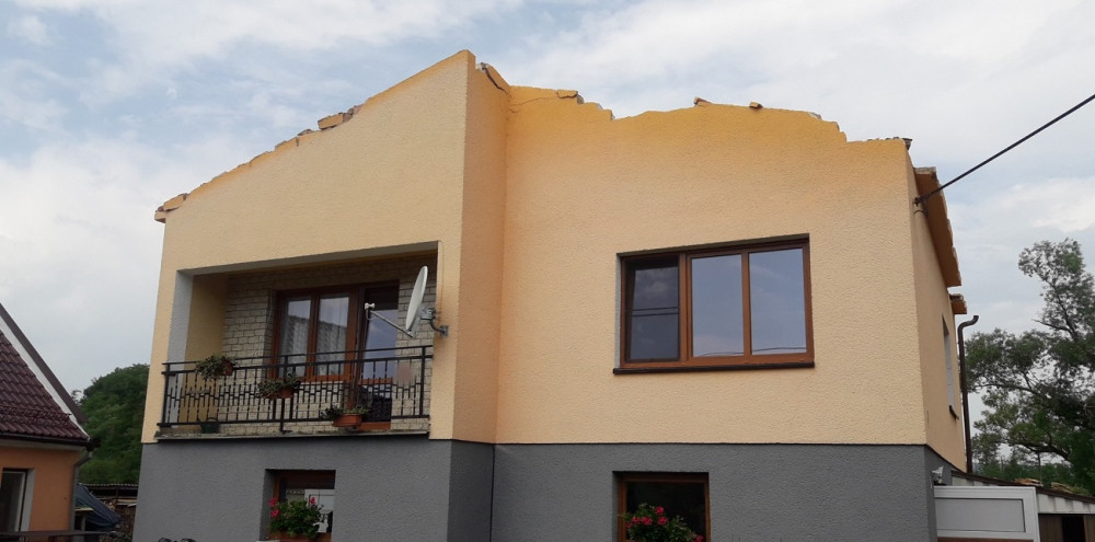 Silný vítr urval střechu rodinného domu a další poškodil, strom na kolejích zastavil také mezinárodní vlak