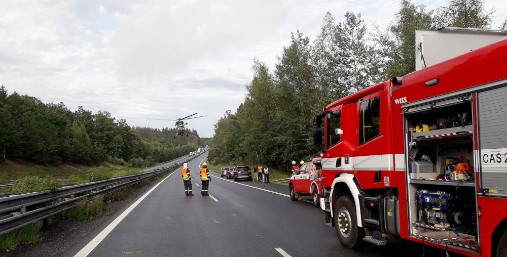 Těžké nehoda ochromila provoz na dálnici D5, jeden muž je v kritickém stavu, další utrpěl těžké zranění