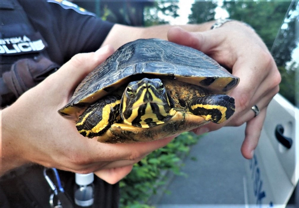 Želva, kterou strážníci odchytili letos v červenci u Košuteckého jezírka, foto: MP Plzeň