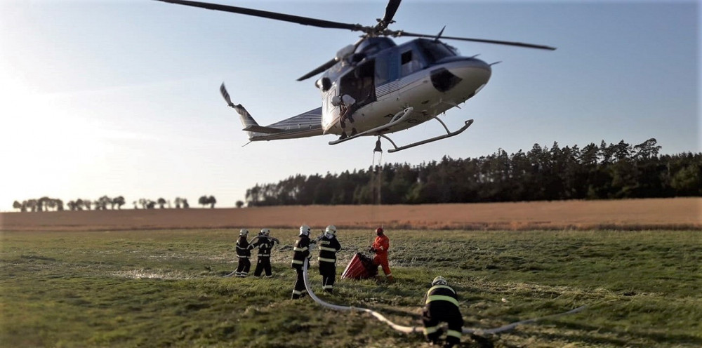 Hasiči bojují s rozsáhlými požáry polí i lesů, vzlétnout musel i vrtulník s Bambi vakem