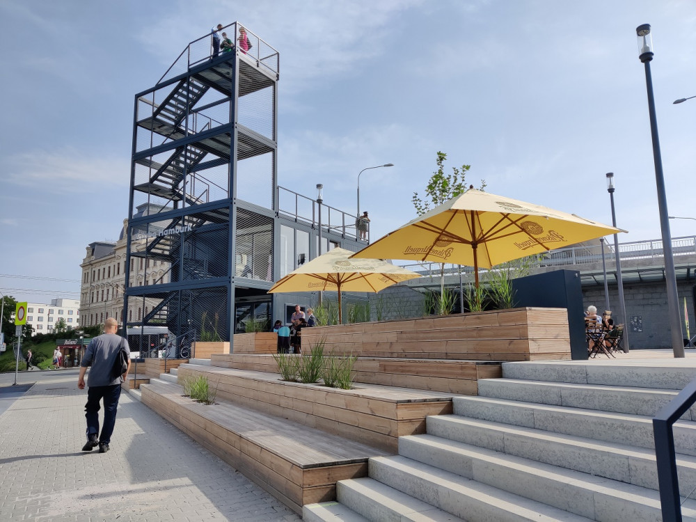 Před rokem vyrostla u hlavního nádraží Paluba Hamburk, stavba z kontejnerů slaví první výročí novou výstavou