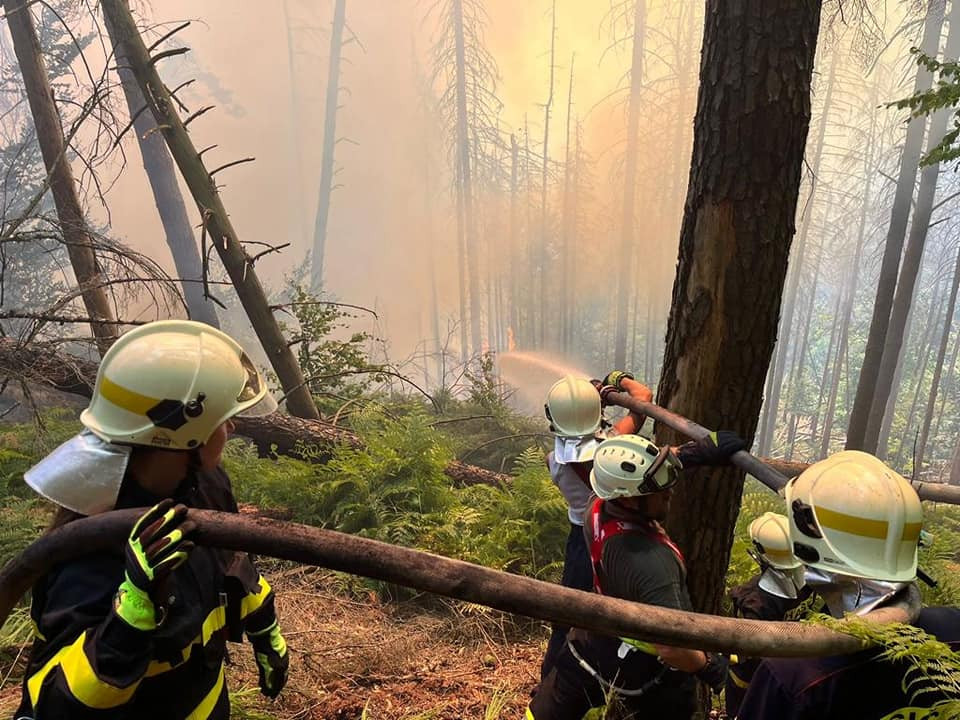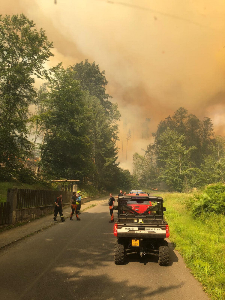 Plzeňští hasiči jeli pomoci kolegům do Hřenska v boji s obrovským požárem Národního parku České Švýcarsko