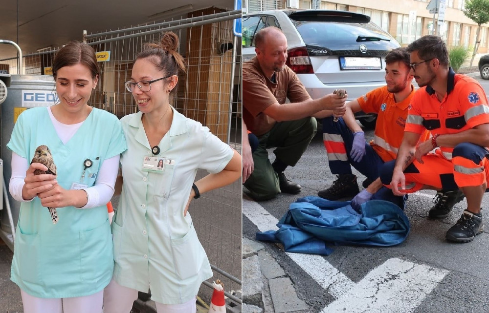 Když je potřeba, zachrání zdravotníci i životy dvou mláďat poštolky, která vypadla ze stejného hnízda