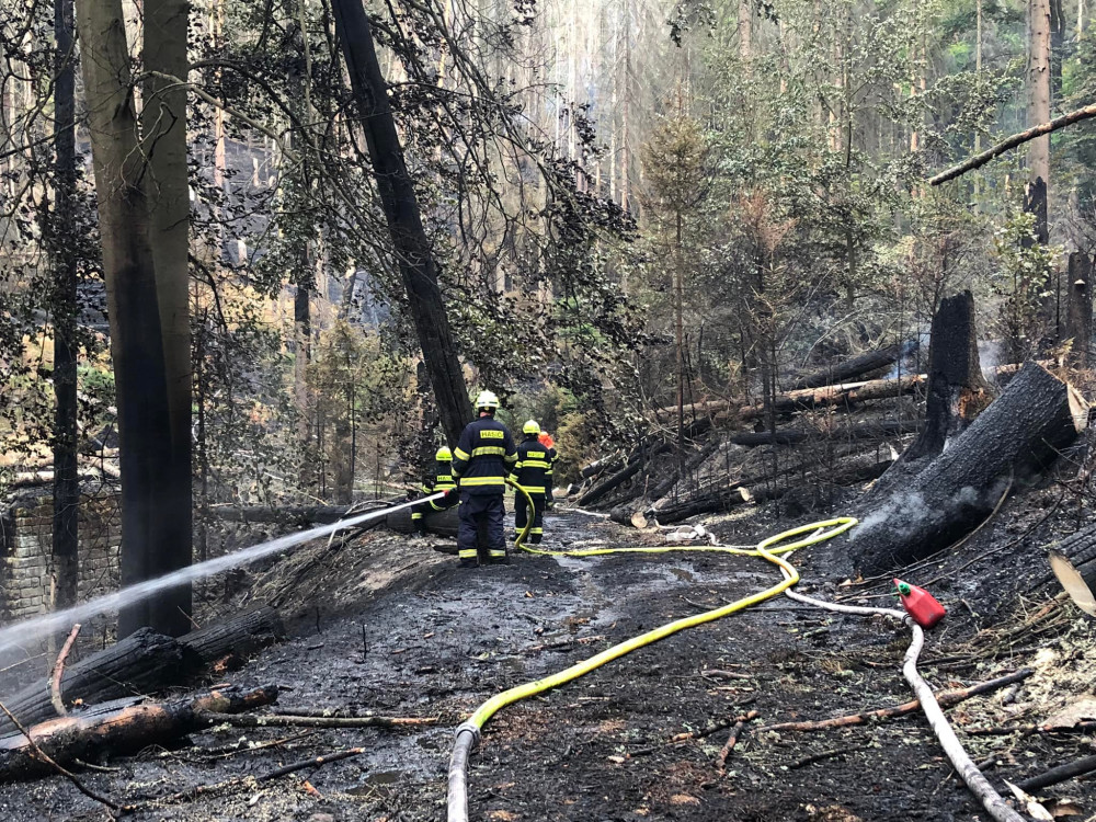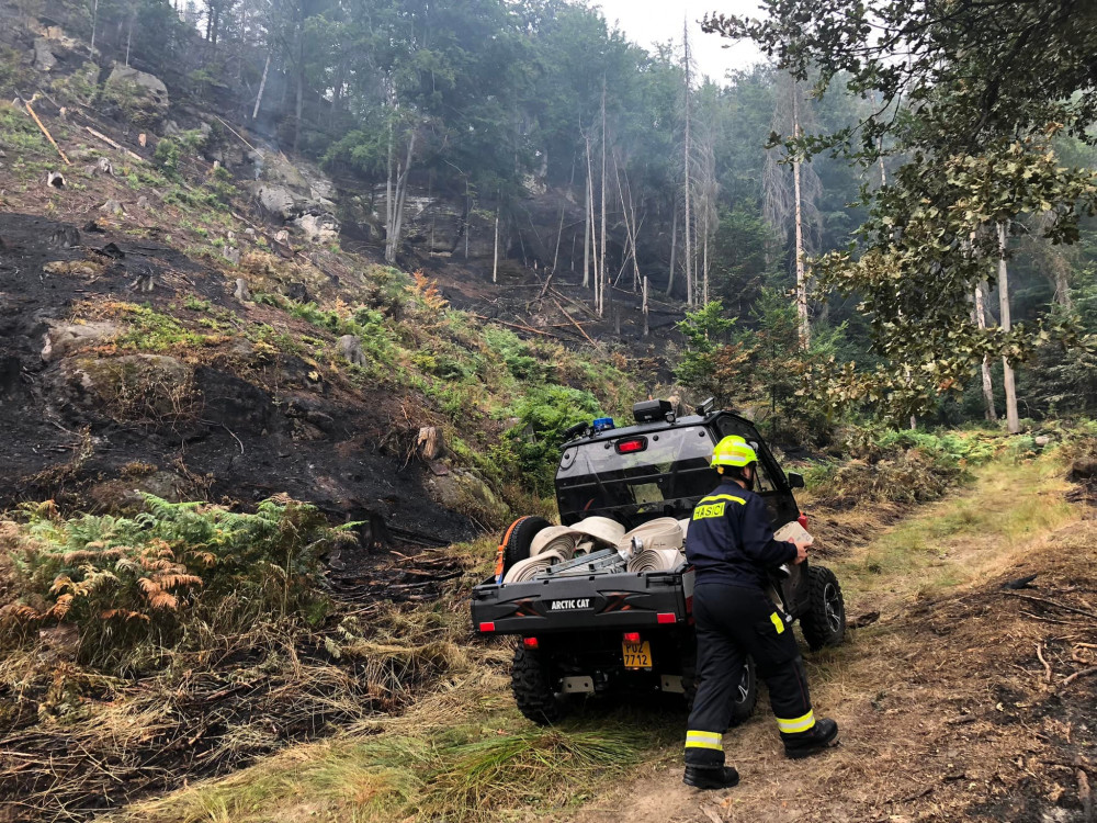 S požárem v Českém Švýcarsku bojují i desítky profesionálních a dobrovolných hasičů z Plzeňského kraje