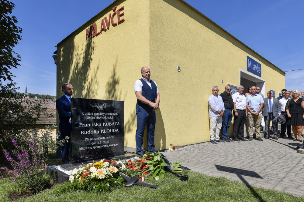 Strojvedoucím, kteří zemřeli loni při srážce vlaků v Milavčích, odhalili na nádraží pomníček