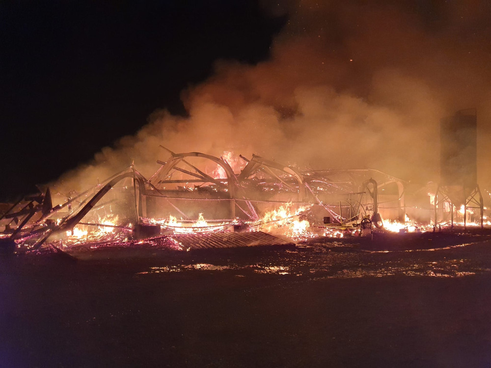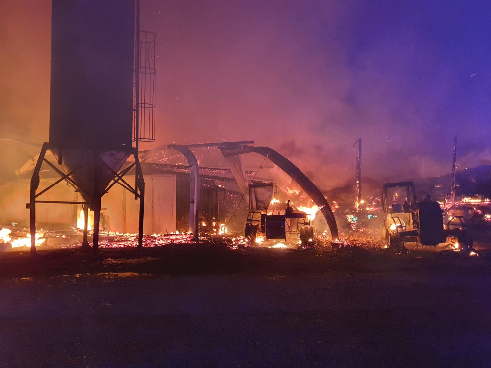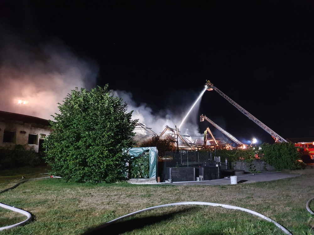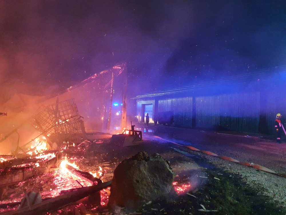 FOTO: Při nočním požáru u hranic s Českem uhynuly desítky kusů dobytka